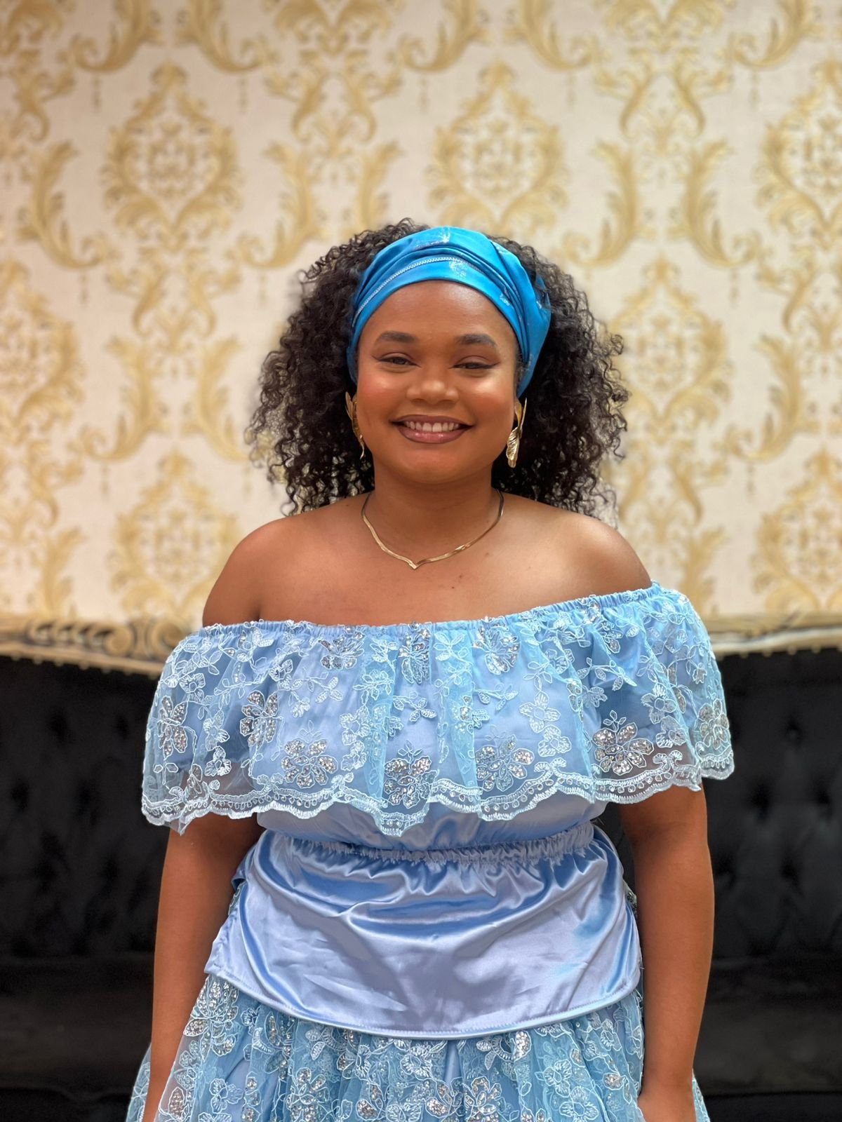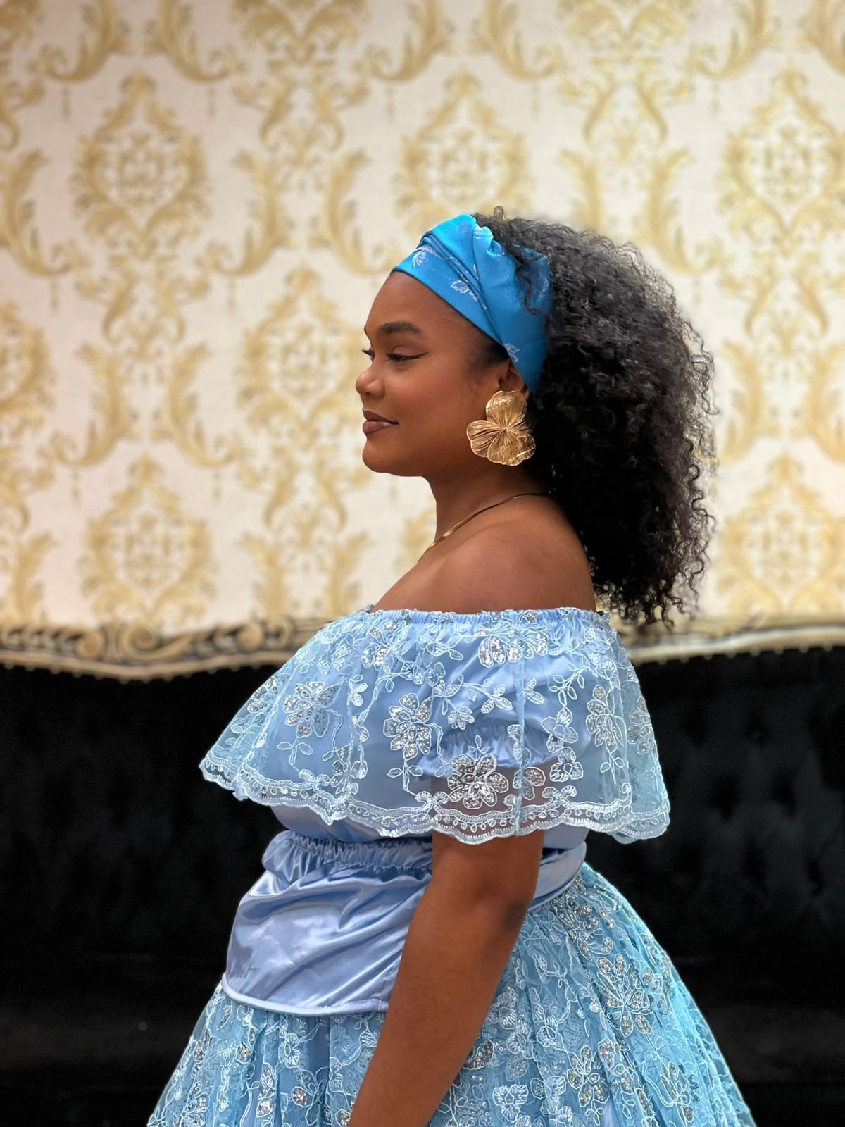 Blusa Babado Bordado Paetê Azul 434