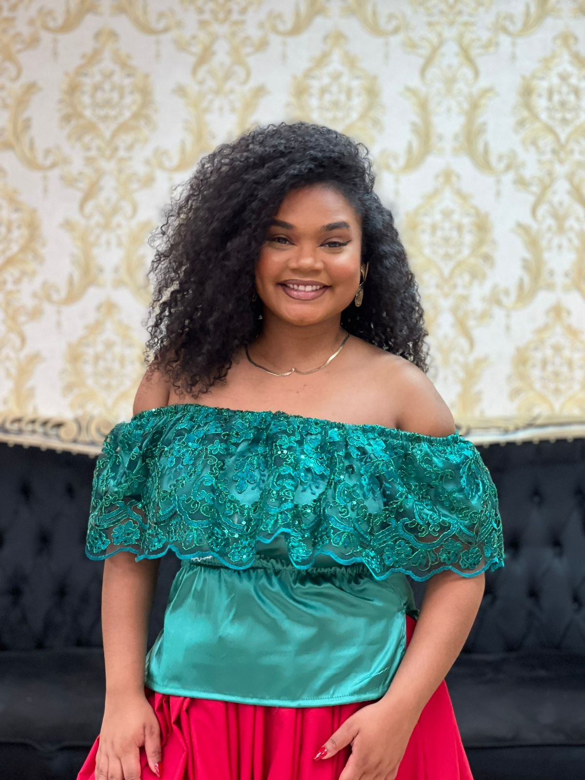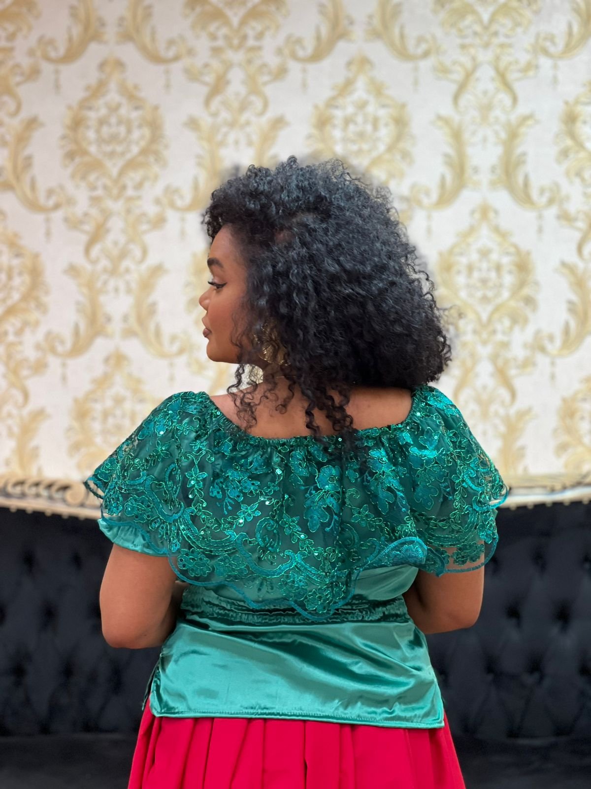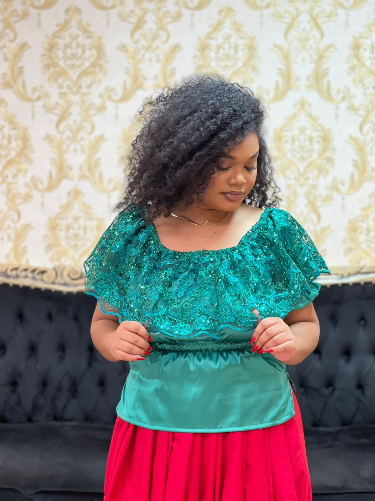 Seja o primeiro a avaliar “Blusa Babado Bordado Paetê Verde 626”