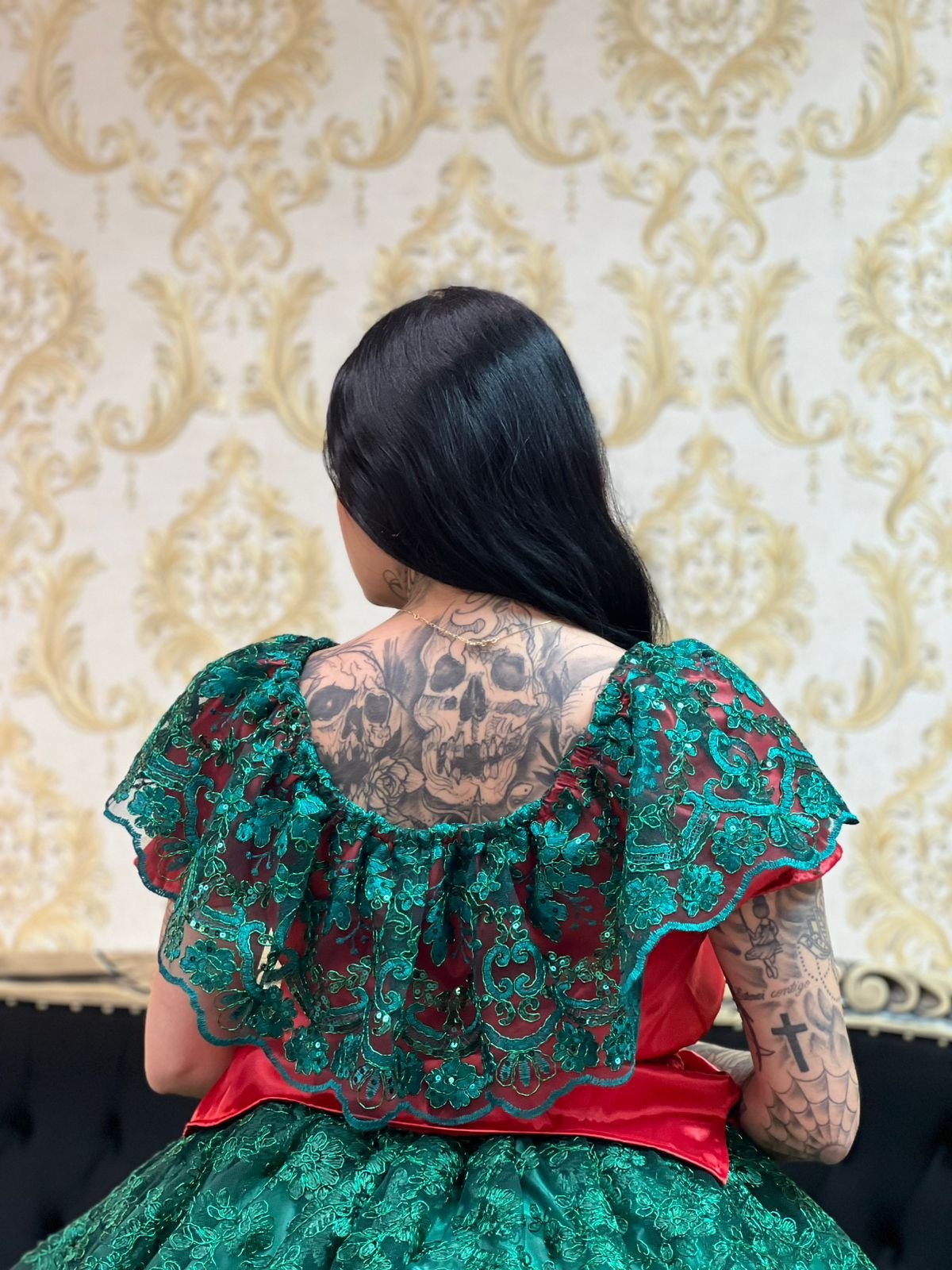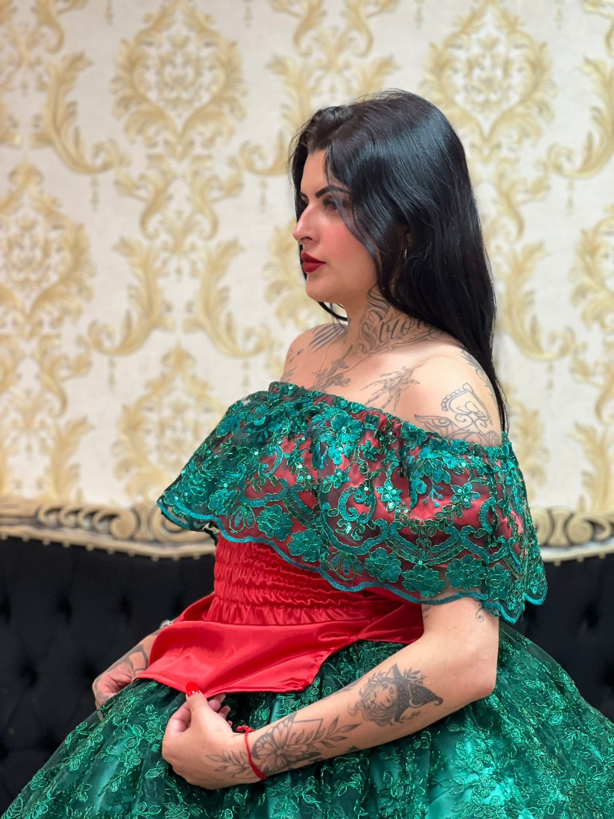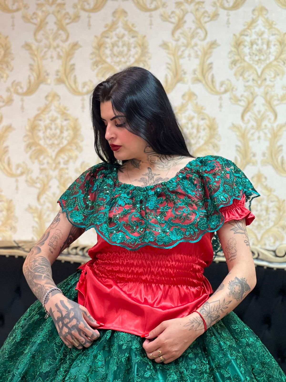 Seja o primeiro a avaliar “Blusa Babado Bordado Paete Verm/Verde 160”