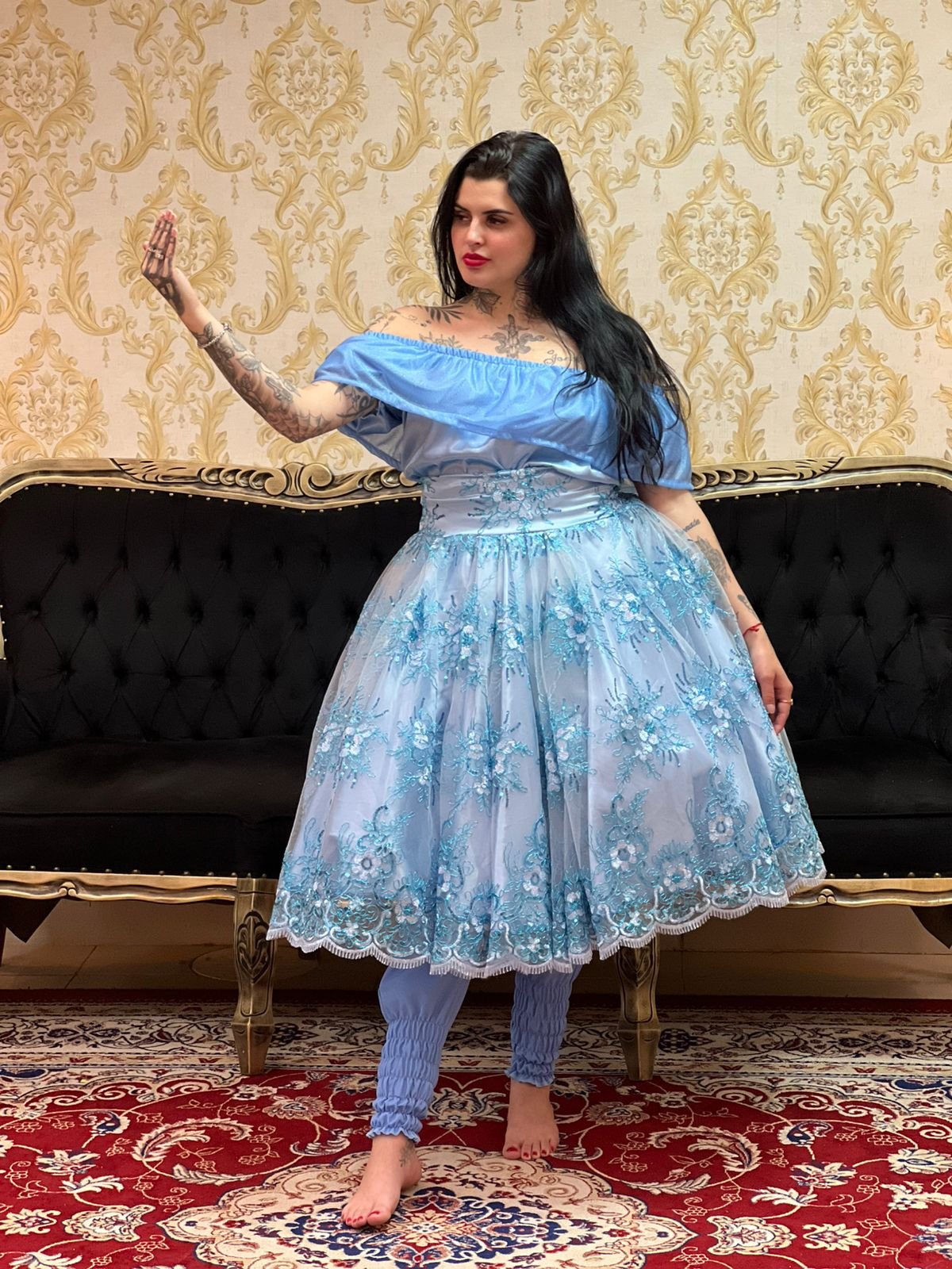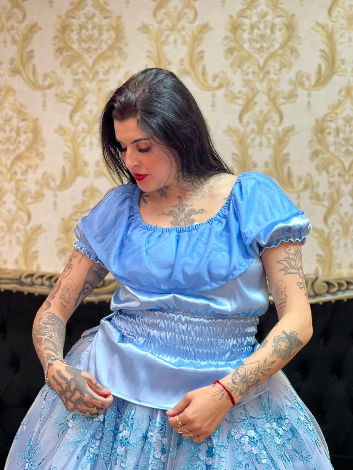 Blusa Babado Brilho Azul 401