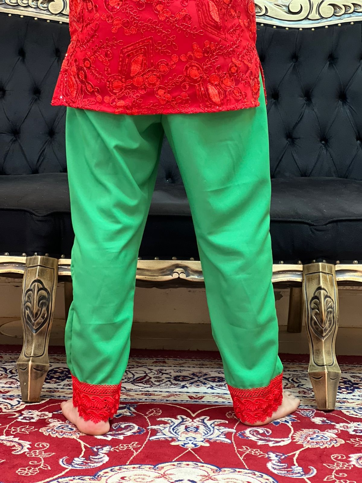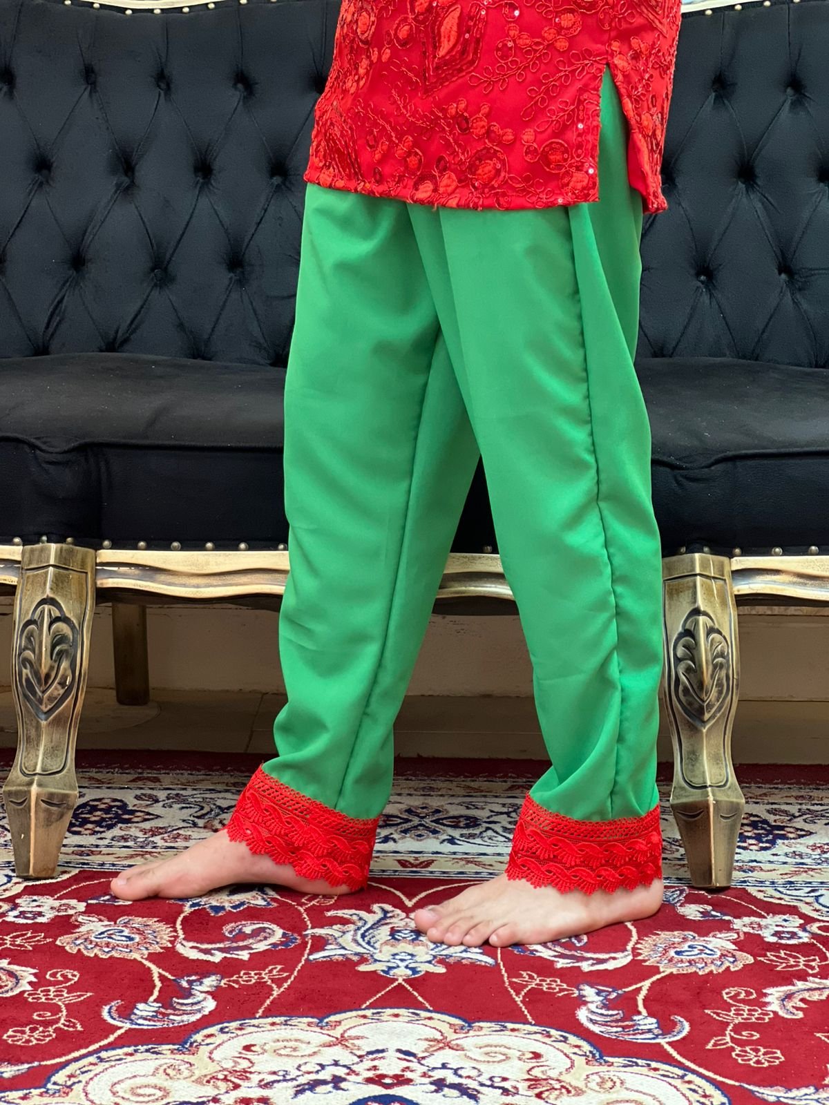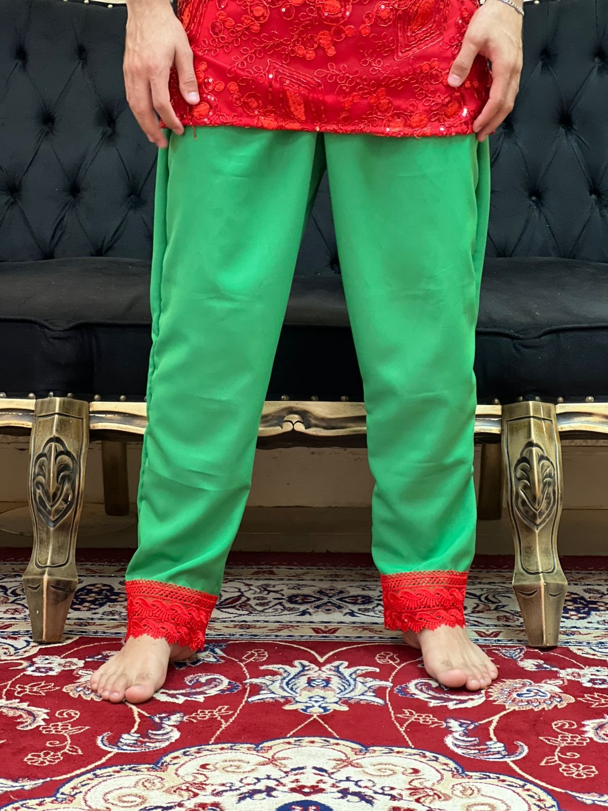 Calça Guipir Verde/Verm 607