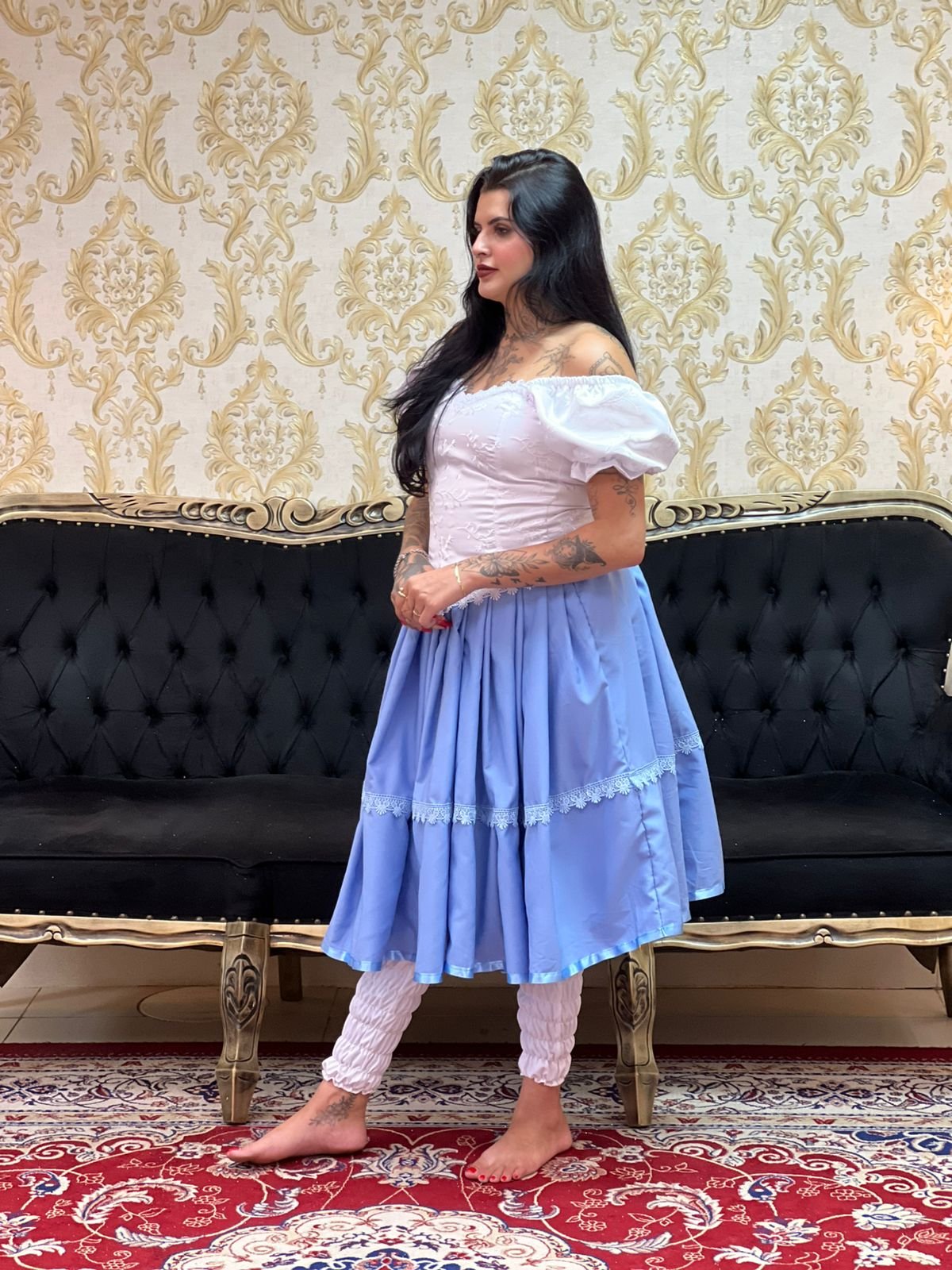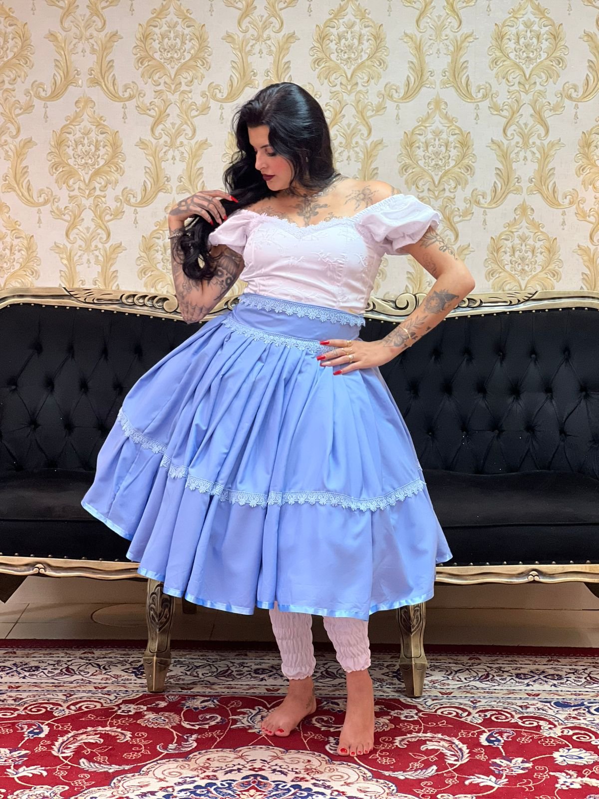 Saia Bordada Longa Pto/Azulão 2411