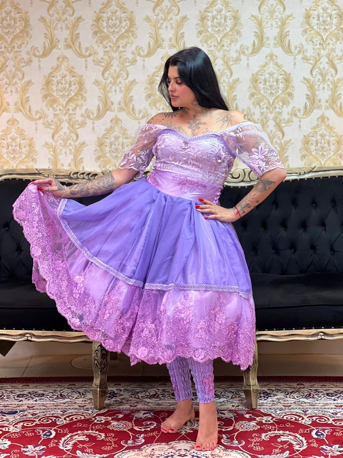 Saia 1 babado Curta Voal/Tule Lilas 584