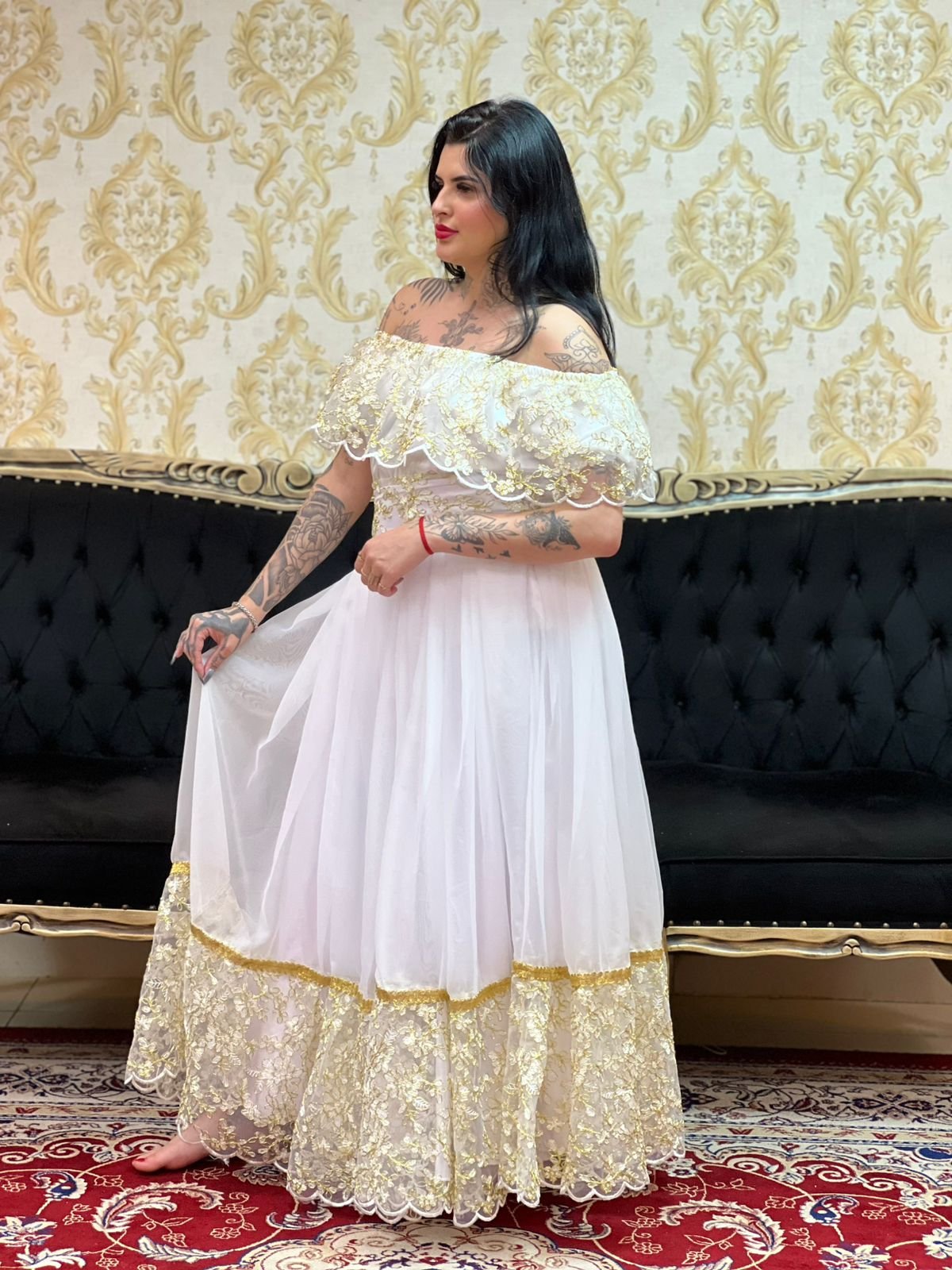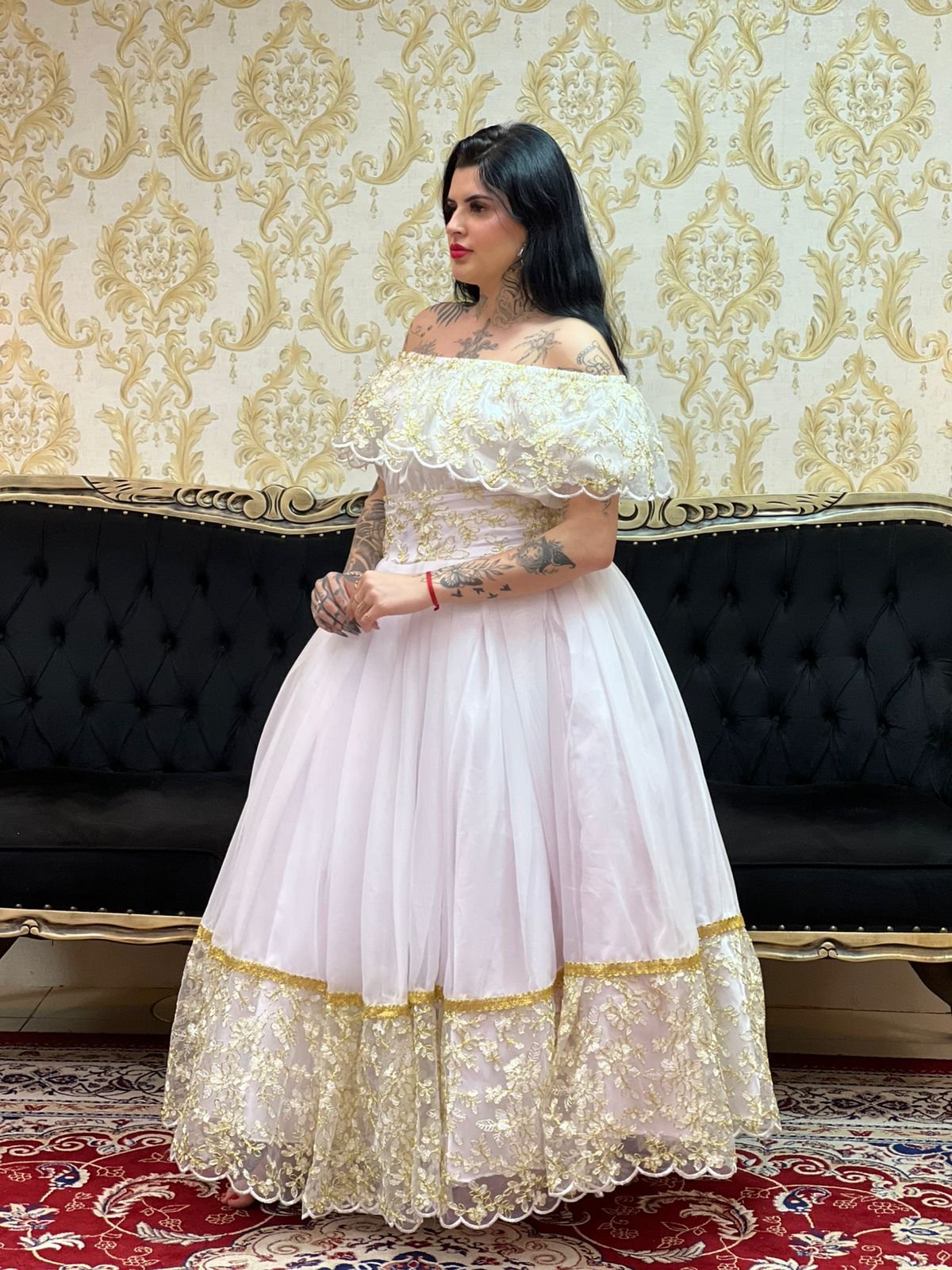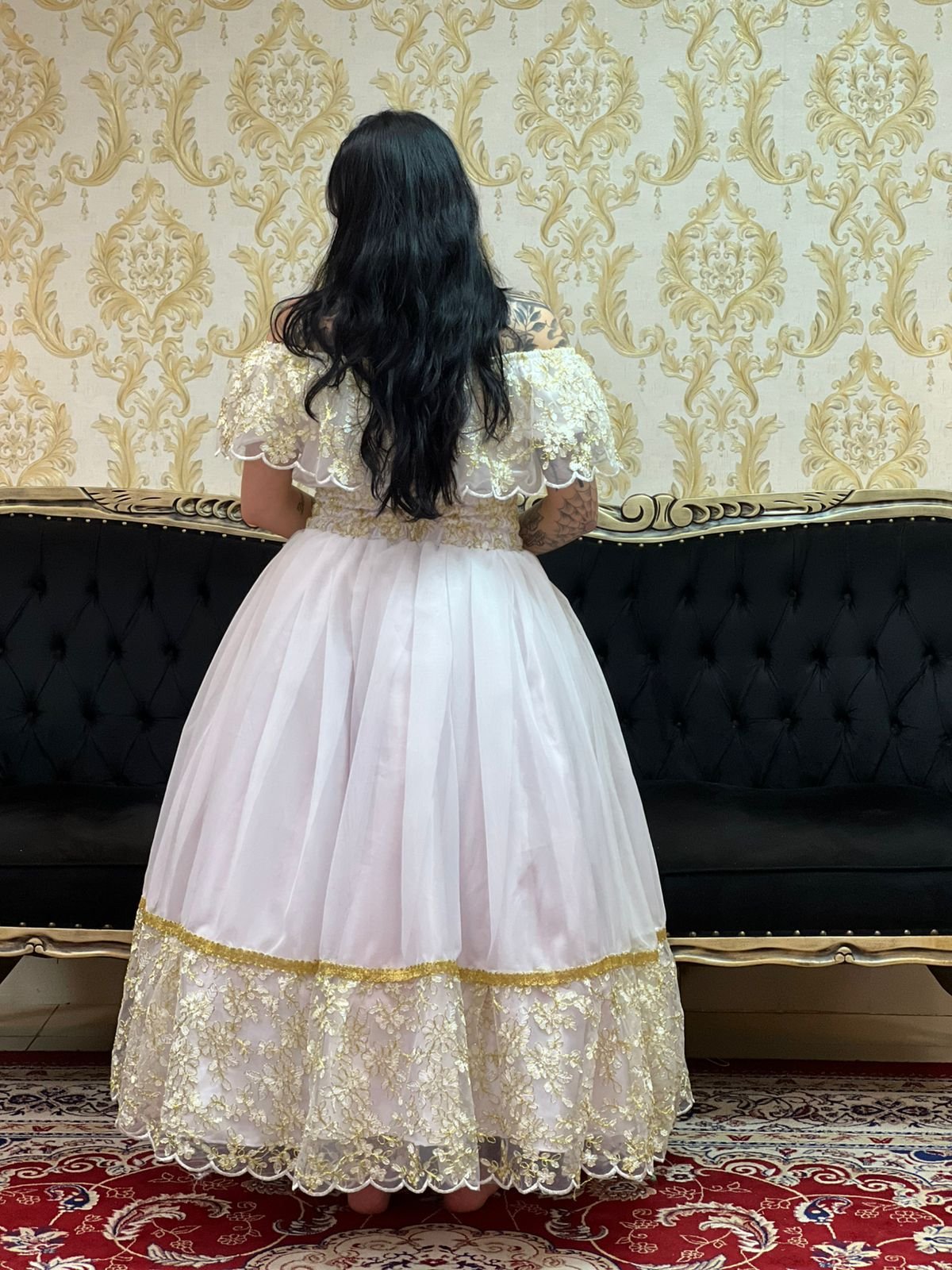 Saia 1 babado Voal/Tule Bco/Dourado 047