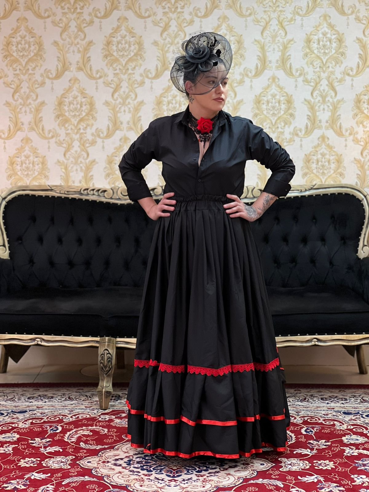 Saia 2 Babados Oxfor Preto/Verm 2117