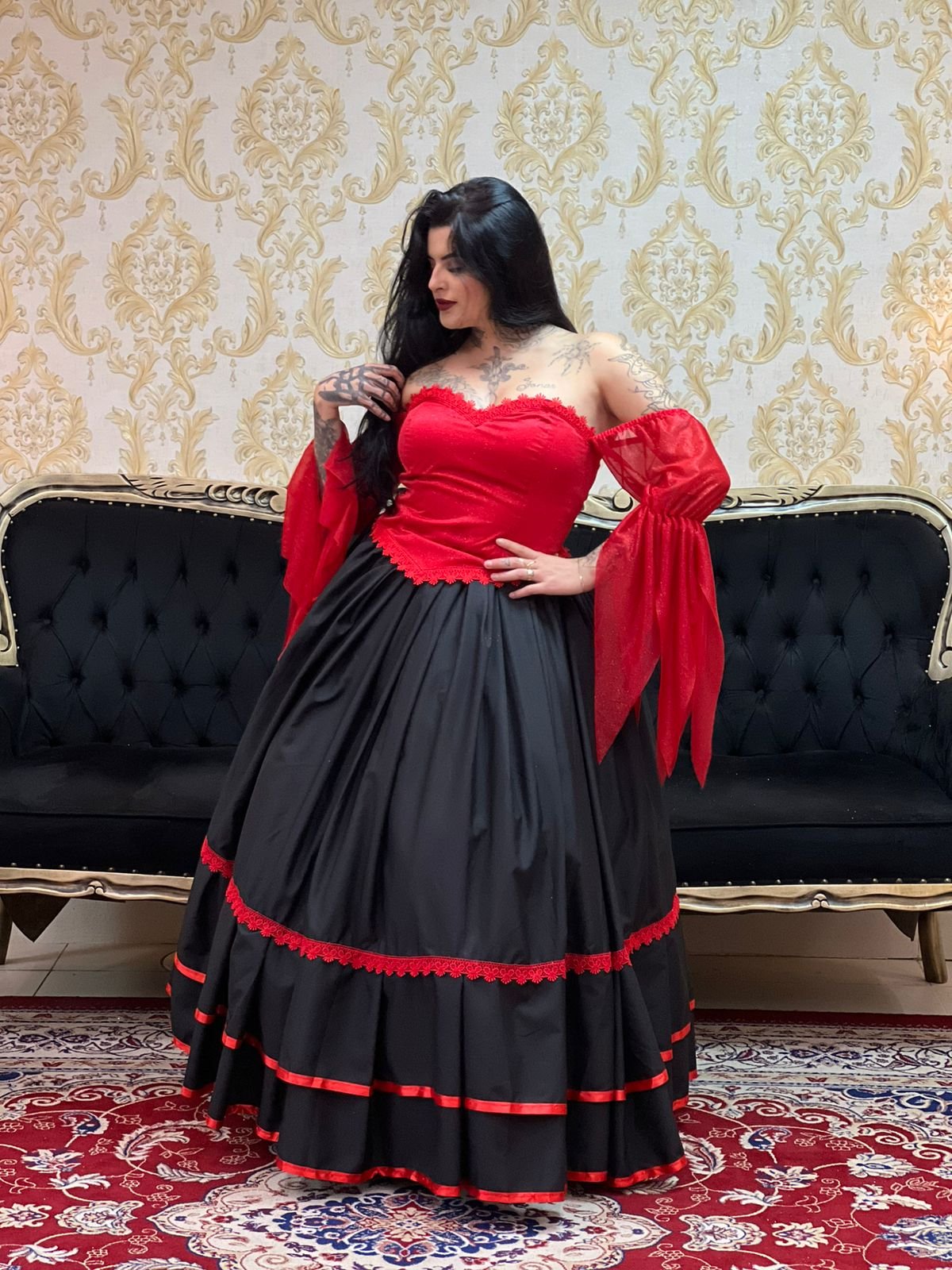 Seja o primeiro a avaliar “Saia 2 Babados Oxfor Preto/Verm 2117”