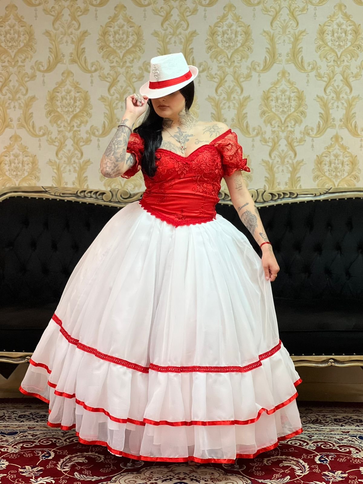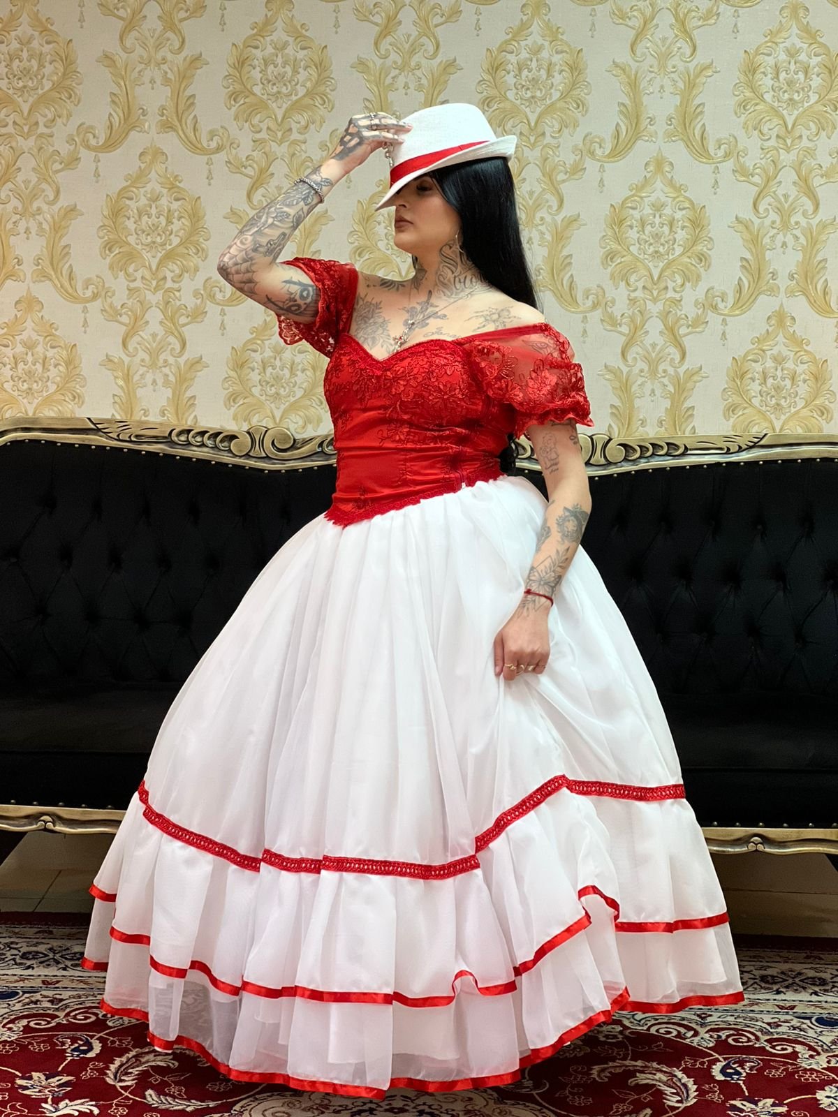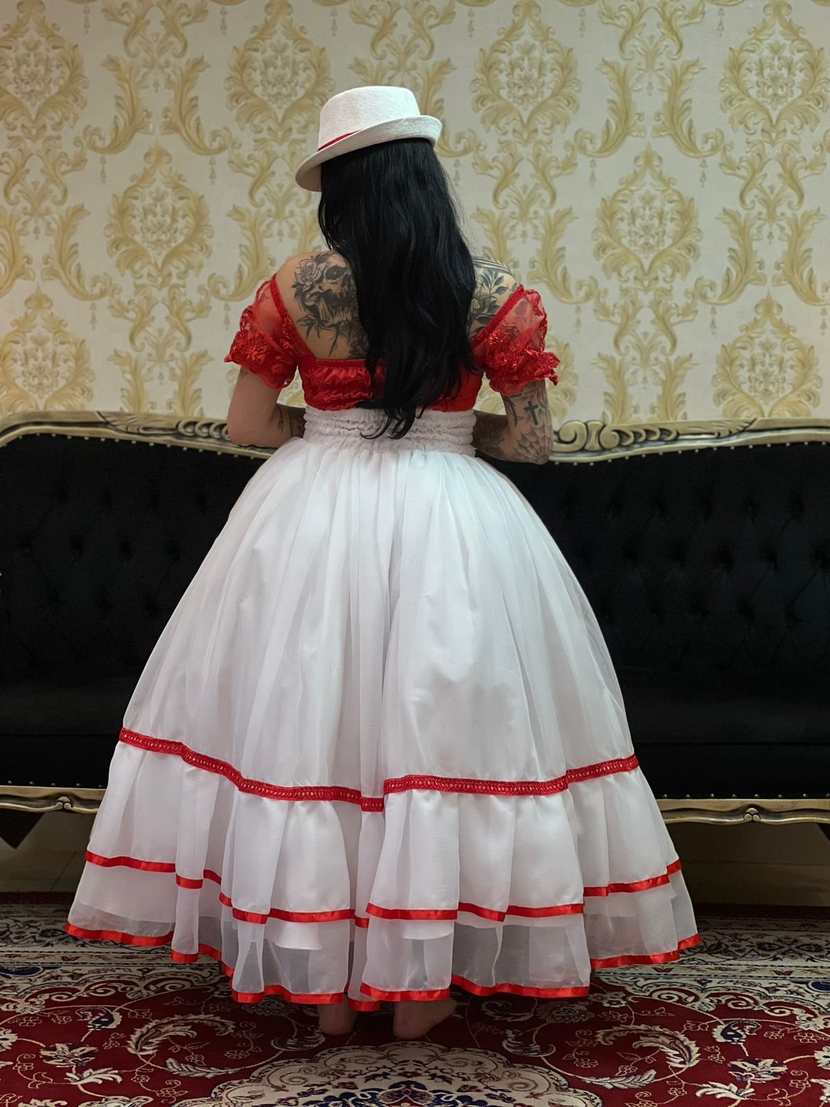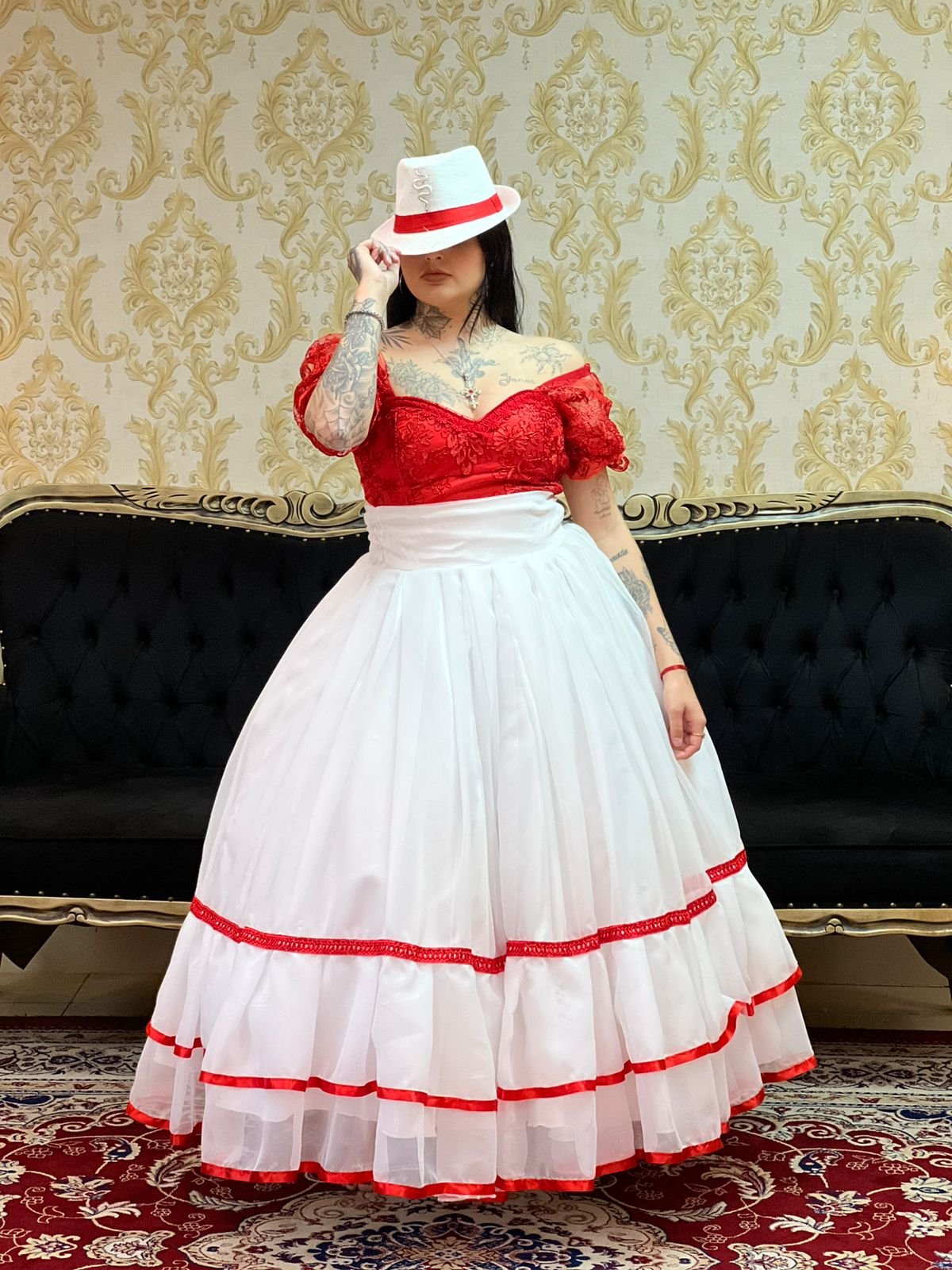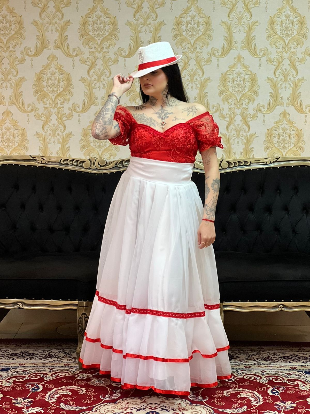 Saia 2 Babados Voal Branco/Verm 070