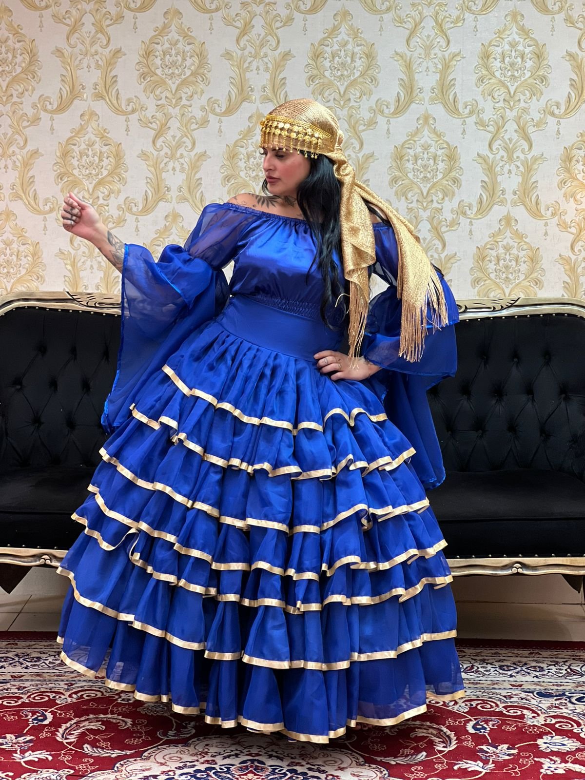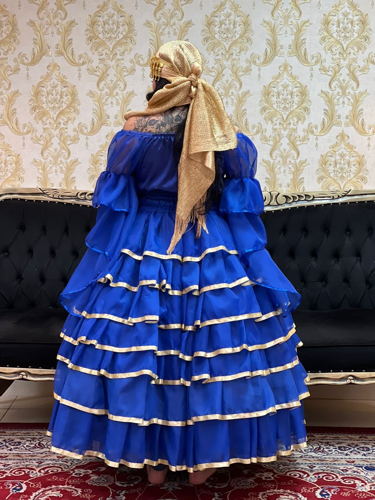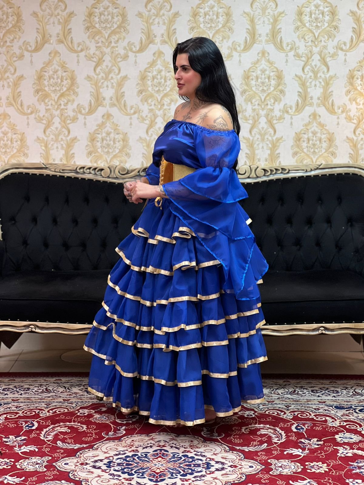 Saia 7 Babados Voal/Fitas Azulão/Dou 8412