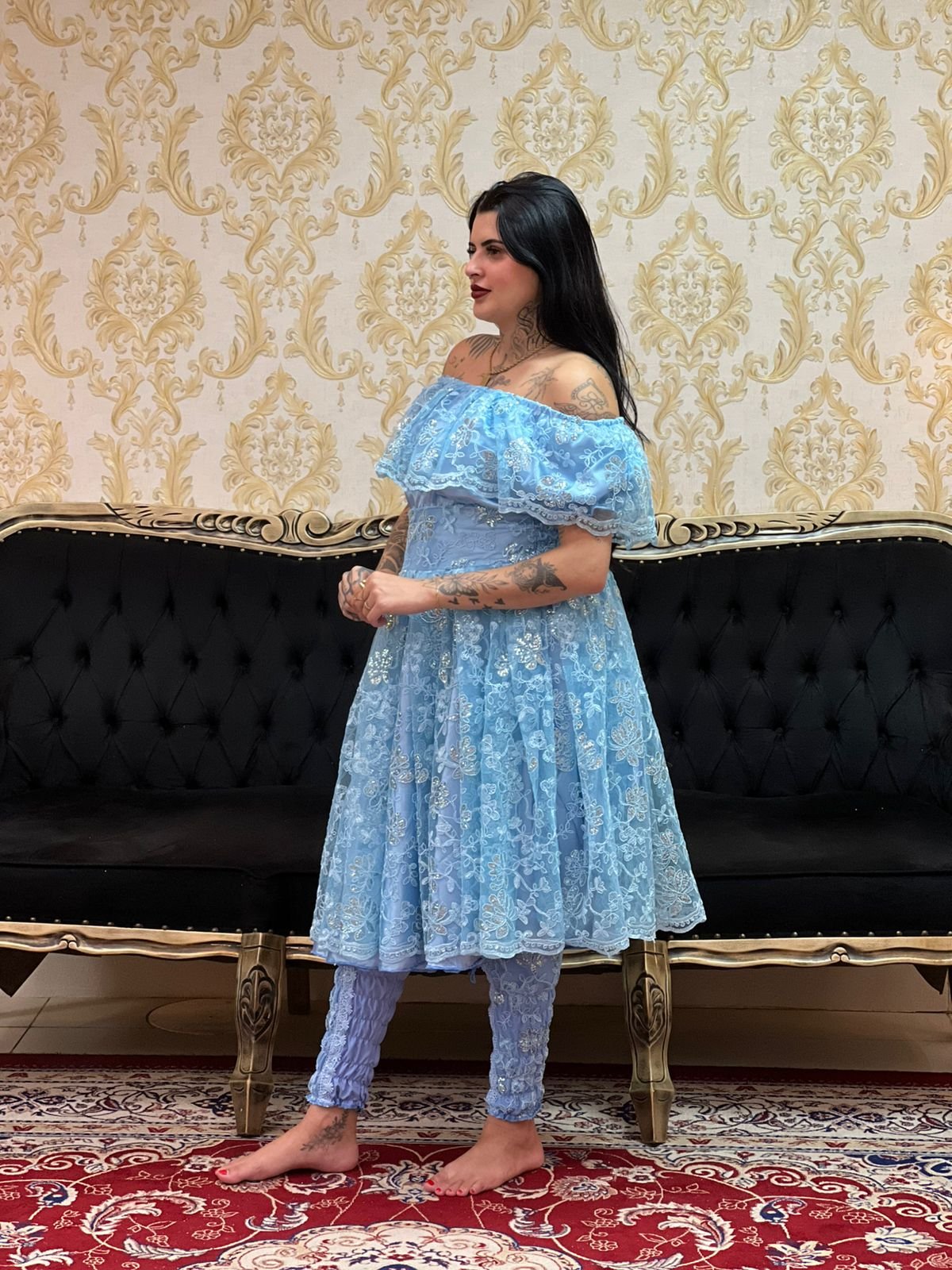 Saia Bordada Longa Pto/Azulão 2411