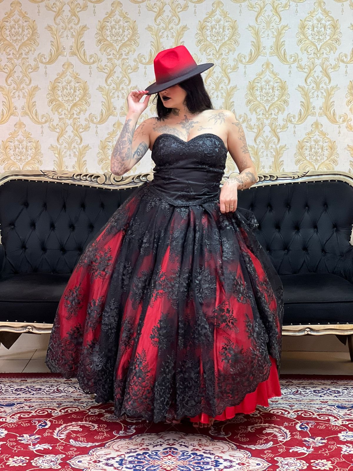 Saia Bordada Longa Verm/Preto 2160