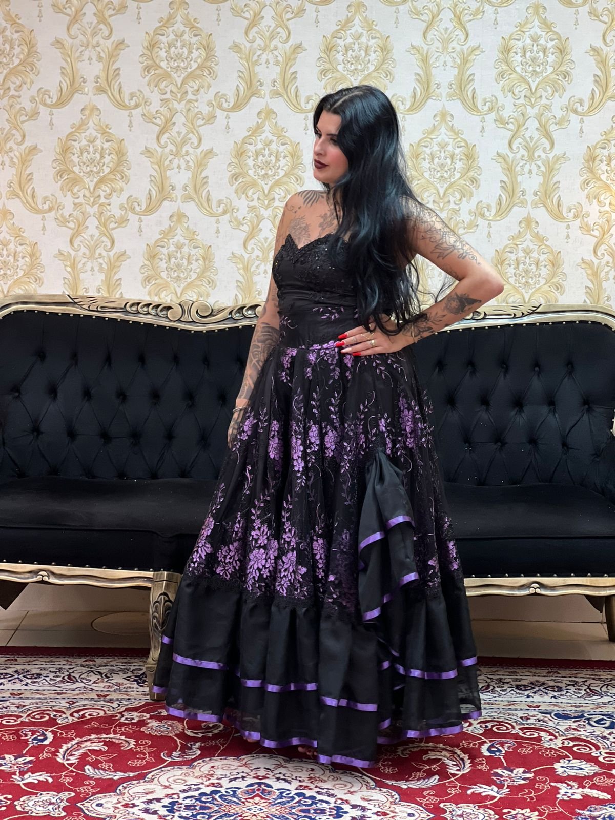Seja o primeiro a avaliar “Saia Cabaré Preto/Roxo 2513”