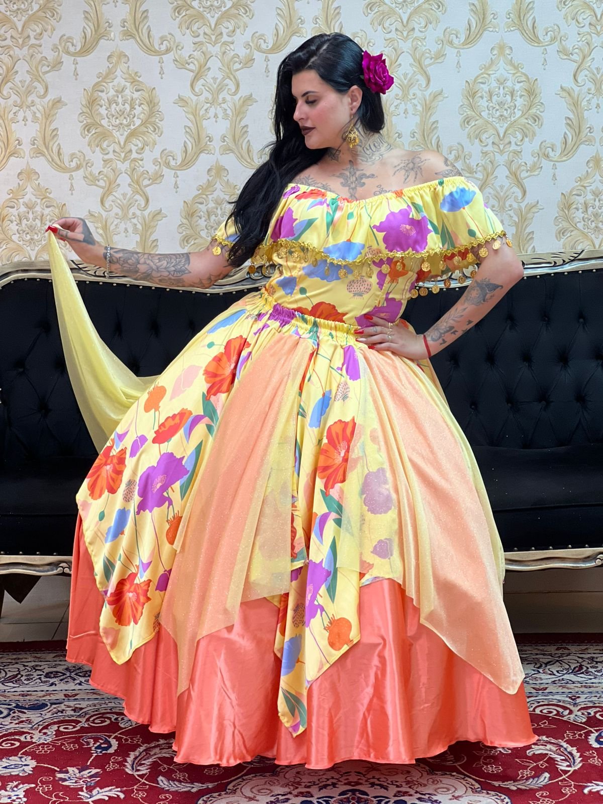 Seja o primeiro a avaliar “Saia Lenços Flores Laranja/Amar 8306”
