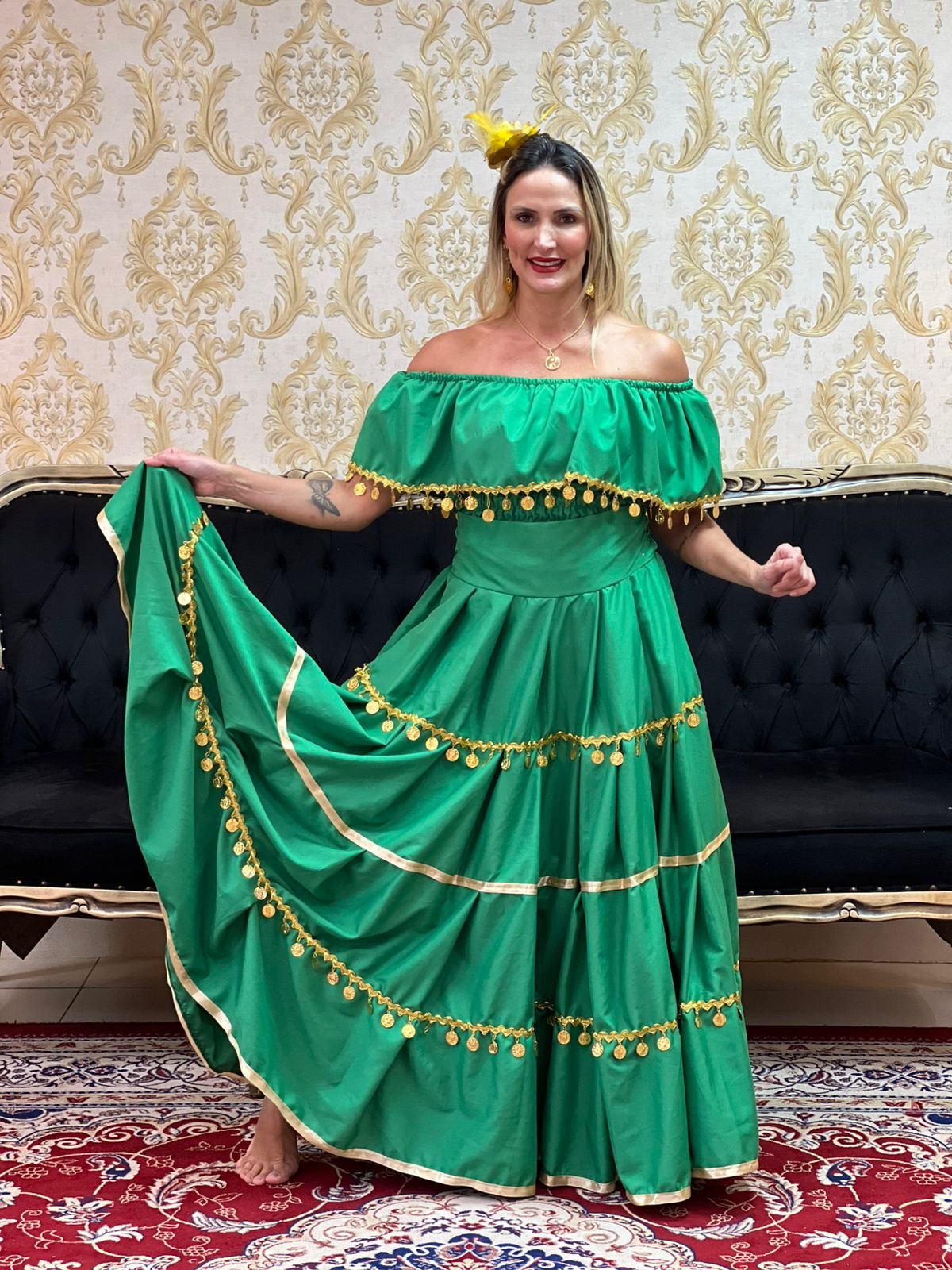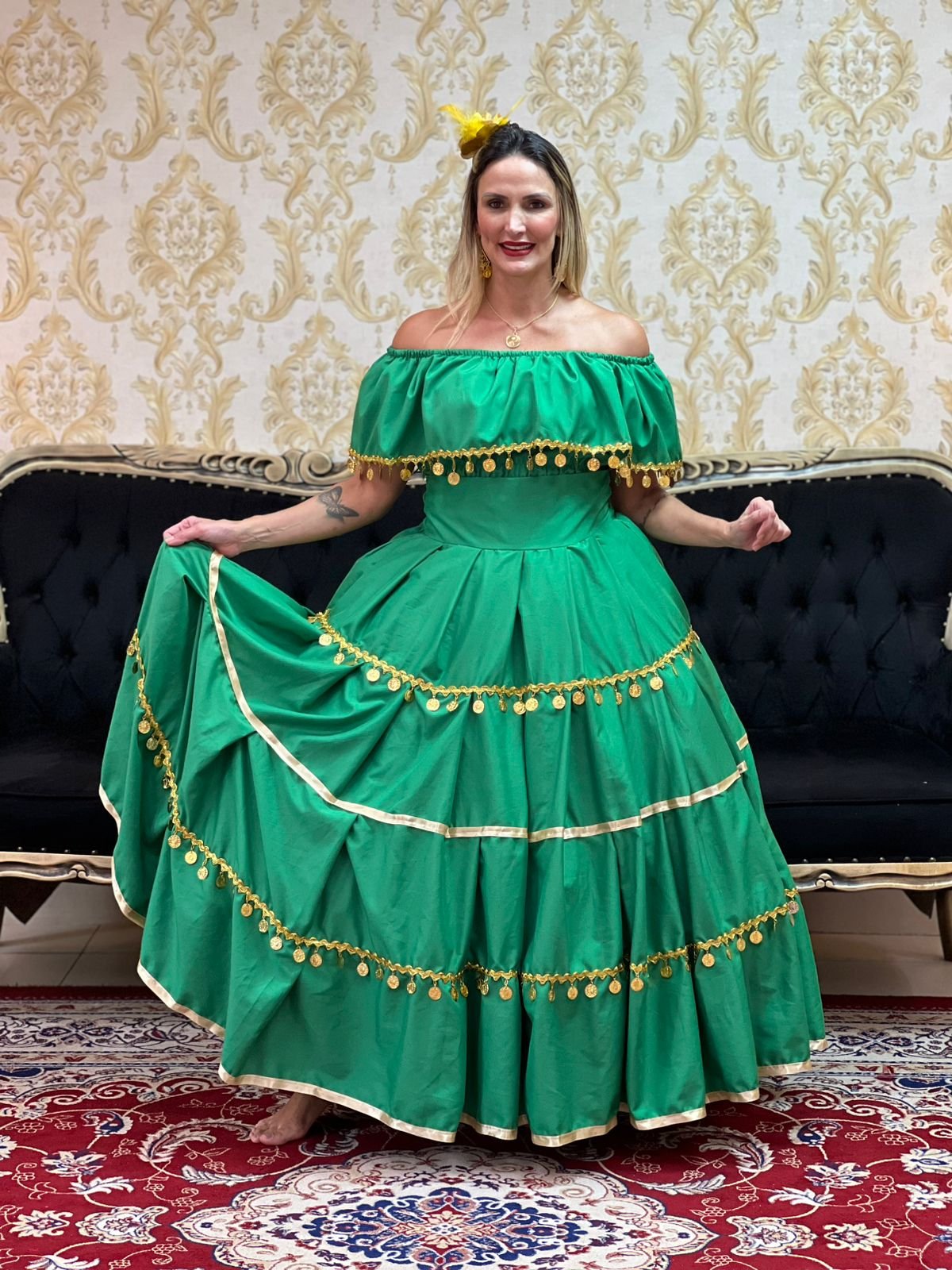 Saia 1 Babado Longa Dourada 387